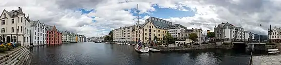 Ålesund est un important port de pêche sur la mer de Norvège, à 230 km au nord-est de Bergen. La ville est renommée pour son architecture de style art nouveau (ou Jugendstil).