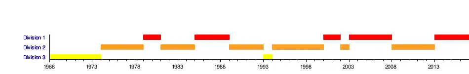 - 1974 : Le club est promu pour la 1re fois de son histoire en deuxième division.