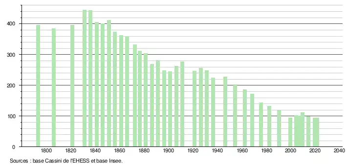(Sources : Ldh/EHESS/Cassini jusqu'en 1999[16] puis Insee à partir de 2006[17].)