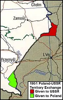 - L'URSS a cédé à la Pologne les territoires situés au nord-est du cours supérieur du fleuve San.