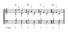 L'échappée se substitue parfois complètement à la note réelle : c'est le cas de la quinte de l'accord de septième de dominante qui peut être remplacée par le IIIe degré, dans une cadence parfaite (exemple C). Dans ce cas, ce IIIe degré doit être placé à la partie supérieure, la sensible, quant à elle, devant être située de préférence, entre le IVe et le IIIe degré.