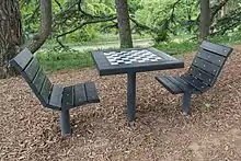 Un échiquier est souvent peint ou gravé sur une table d'échecs.