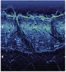 L'échographie haute fréquence est une technique d'imagerie médicale basée sur des ultrasons à haute fréquence (>20 MHz)[2]. C'est un outil de diagnostic qui offre une meilleure résolution qu'une échographie classique (1-15 MHz), de l'ordre de la dizaine de microns, mais avec de faibles profondeurs de pénétration[3].