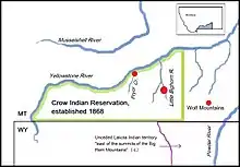 Après 1868, la tribu des Crows était installée dans sa nouvelle réserve instaurée au cœur du Montana après le traité de 1851:1008. Déjà en 1870, les Crows s'opposèrent aux Sioux, qui venaient prendre des chevaux dans les camps de la réserve entre les rivières Bighorn et Little Bighorn[10]. Des Crows rapportèrent que les Lakotas chassaient sur la rivière Bighorn en [11]:43. À la suite d'un long affrontement avec les Sioux à Pryor Creek en 1873, le chef crow Blackfoot déclara : « Les Sioux veulent nous prendre notre territoire, mais nous ne les laisserons pas faire[12]:124. » Il demanda l'appui des Américains pour constater l'invasion des Sioux:106. L'agent des affaires indiennes Dexter E. Clapp rendit son rapport au printemps 1876 constatant que les Sioux contrôlaient la partie est de la réserve des Crows:108.