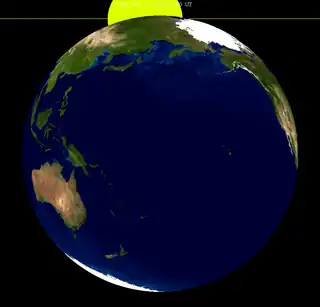 Cette éclipse était visible de l'Asie du Sud-Est, l'océan Pacifique, l'Australie et la Nouvelle-Zélande après le coucher du soleil, et dans l'Ouest de l'Amérique du Nord avant l'aube.
