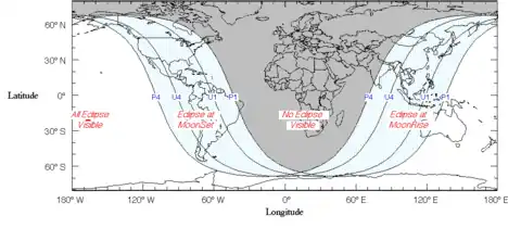 Parmi ceux-ci en Amérique du Nord, les observateurs de l'ouest du Canada et des États-Unis avaient la meilleure vue, puisque le coucher du Soleil se produisit après la mi-éclipse[2].