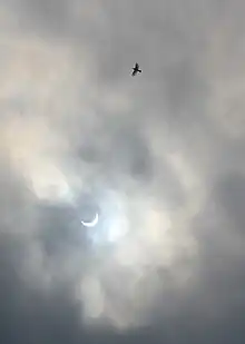 Depuis les airs, l'éclipse a été observée à près de 14 000 mètres d'altitude à bord de 3 Dassault Falcon 7X affrétés par la compagnie Amjet Executive SA pour accueillir scientifiques et passionnés.