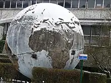Un immense globe terrestre (5 mètres de diamètre, composé d'une coque d'une épaisseur de seulement 6 centimètres) est installé devant l'établissement. Muni d'une rampe en acier, il servait à la classe de géographie. Les continents en relief permettaient aux élèves de matérialiser par le toucher les différences d'altitude de la Terre[5] (qui ne sont toutefois pas à l'échelle)[6]. Tout comme l'école, il est classé monument historique en 2002 mais la rampe a disparu. Il est intégré au parcours créé par le musée d'histoire urbaine et sociale de Suresnes (matérialisé par une borne informative), qui présente les édifices remarquables du XXe siècle de la commune. En 2017, à l'initiative de la municipalité, la DRAC donne son accord pour restaurer le globe, dégradé, pour un coût de 76 000 euros, grâce à une souscription[7]. Les travaux s'achèvent l'année suivante[8],[9].