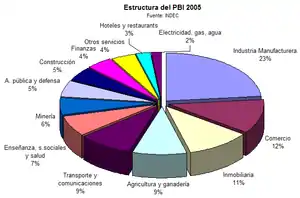 Le PIB (en valeur nominale) totalisait en 2005 181 258 millions de dollars, situant l'Argentine comme troisième économie d'Amérique latine, tandis que par habitant il se montait à 6 548 dollars US[28]. Si on considère le PIB en parité de pouvoir d'achat ou PPA (selon les mesures définitives du FMI pour 2005), il monte à 533 722 millions de dollars[29], rapprochant sérieusement le PIB argentin de celui du Mexique (dont il représente la moitié) ou du Brésil (dont il représente un tiers). Si bien qu'étant donné la population de ces trois pays, le revenu moyen par habitant établi sur la liste des pays par PIB (PPA) par habitant est de 12 046 dollars, mettant l'Argentine en tête de l'Amérique latine en ce qui concerne cet indice.
