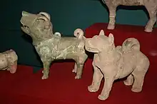 Les ateliers gouvernementaux des Han fabriquent des objets de luxe, des objets de la vie quotidienne et même des articles funéraires connus sous le terme de Mingqi (明器/冥器). Ces Mingqi incluent, entre autres, des figurines en céramique et des briques ou des tuiles servant à décorer les murs des tombeaux[78]. Ces ateliers sont sous la tutelle du Petit Trésorier (少府)[79].