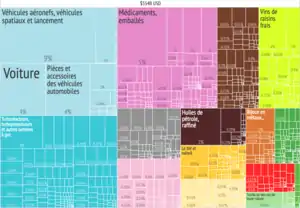 | Biens exportés | Biens de luxe, machines et équipements de transport, aéronautique, produits plastiques, produits chimiques, produits pharmaceutiques, fer et acier, boissons |