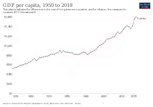 Le PIB a progressé régulièrement entre 1965 et 1980, avec un taux de croissance de 3,5 %, pour descendre à 0,9 % entre 1980 et 1986, et redémarrer avec un taux de 4,1 % par an entre 1987 et 1990. Le taux de croissance en 2012 est de 3,9 %[2].