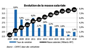 Ainsi depuis les années 2000, le PIB/habitant a été multiplié par 1,7. À titre de comparaison, celui de la Polynésie française n’a pas progressé sur cette période et celui de la France a progressé de moins de 0,4[8].