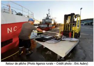 En 2019, la production palangrière s’élève à 2 516 tonnes débarquées. Le thon représente près de 90 % des volumes pêchés. En particulier, le thon blanc, qui représente plus des deux tiers de la production totale et le thon jaune 22 %.