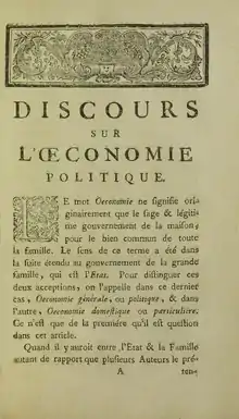 L'économie politique peut s'entendre dans un sens général comme étant l'économie de la cité par opposition à l'économie domestique. L'expression d'« économie politique » est créée au début du XVIIe siècle et employée à l'origine selon Charles Gide[1] pour décrire « l'étude de la production économique, l'offre et la demande de biens et services et leurs relations avec les lois et coutumes ; le gouvernement, la distribution des richesses et la richesse des nations incluant le budget ». Pour Léon Walras, l'économie politique se définit comme l’exposé de ce qui est, et le programme de ce qui devrait être[2].