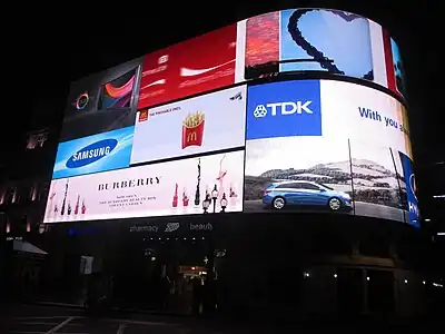 Les écrans géants à LED sont principalement présents dans les grandes villes (comme supports informatifs… et lors de grandes manifestations) et dans certains centres commerciaux pour promouvoir leurs opérations.