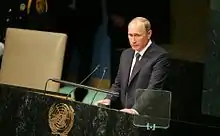Vladimir Poutine devant l'Assemblée générale des Nations unies appelant à une large coalition contre l'État islamique.