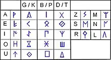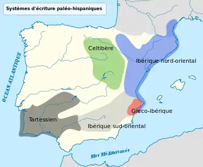 L'écriture celtibère possède deux variantes, l'une orientale, et l'autre occidentale.