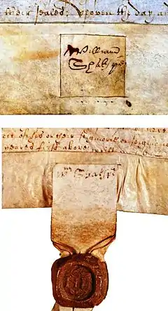 Les autres signatures faites alors qu'il était probablement en bonne santé l'ont été dans des circonstances particulières. Comme Edward Maunde Thompson l'a remarqué, celle apposée sur l'hypothèque de la maison de Blackfrair est contenue dans un espace restreint[13].