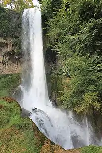 Fondée sur des formations travertineuses (concrétions carbonatées), elle est connue dans l'ensemble de la Grèce pour ses chutes d'eau impressionnantes.