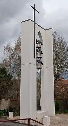 En 2016, un campanile est rajouté en contrebas à droite de l’entrée qui s’élève à neuf mètres. Il soutient trois cloches une en mi (155 kg), une en do (190 kg) et une en ré (275 kg). Il a été béni par l'évêque de Versailles, le dimanche 10 avril 2016.