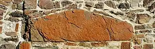 Le mur extérieur du collatéral nord porte encore la trace d'une ancienne porte - aujourd'hui murée - dont l'encadrement de pierre est composé de deux piédroits et d'un puissant linteau en bâtière à la belle couleur ocre. On remarquera également de beaux blocs de pierre de couleur rose insérés par endroits dans la maçonnerie de cette façade.