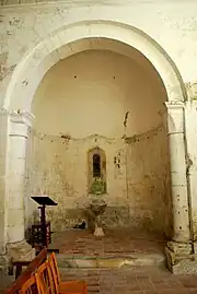 Une absidiole voûtée en cul-de-four, comme l'abside, complète le croisillon Sud.
