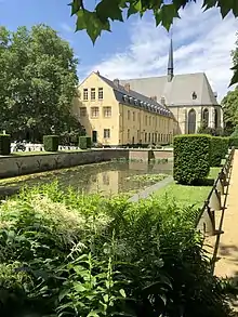 L'entrée principale par la cour d'honneur de l'abbaye de la Cambre