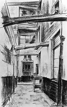 L'impasse derrière l'église de la Chapelle, (dessin par Léon van Dievoet, 1939).