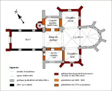 | Autres campagnes de travaux | milieu XVIe siècle (voûtes et croisillons du transept, portail) | |||