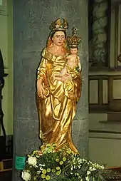 Cette porte s'ouvre sur le vestibule situé sous la tour, dans lequel une statue de la Vierge à l'Enfant accueille fidèles et visiteurs.