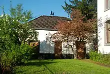 Le chevet est prolongé par une sacristie qui se trouve dans l'axe du chœur et présente les mêmes caractéristiques que l'ensemble de l'édifice : briques rouges, soubassement en blocs de grès et de pierre bleue, chaînages d'angle, fenêtres classiques encadrées de pierre bleue.