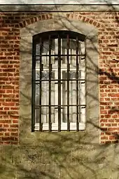 Chacune des façades latérales est percée de cinq grandes fenêtres de style classique à arc surbaissé présentant un encadrement réalisé en pierre bleue.