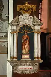 Sur la gauche du portail principal est enchâssée une dalle qui commémore la vie de Jacques-François Dusausoy[Notes 5] (1756-1824), curé de 1794 à 1824. Durant son service de trente ans, ce curé protégea notamment la châsse de saint Étienne de la destruction, transféra les reliques dans un nouveau coffre à la suite du pourrissement du premier durant son deuxième ensevelissement temporaire (entre 1794 et 1806) et rédigea sur parchemin le transfert des reliques.