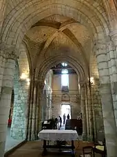 - Le croisillon nord et l'absidiole nord, toujours du même style, sont un peu plus récents et ont été terminées vers 1190 / 1200. Des fenêtres bouchées dans la partie droite du chœur montrent que l'absidiole et la chapelle sud n'étaient pas prévues initialement.