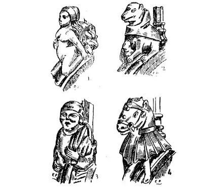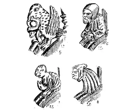 Au XIXe siècle, Léo Drouyn identifiait[6] un certain nombre de ces figurations. Pour plus d'information sur l'iconographie, voir : l'iconographie des modillons romans et le livre de Christian Bougoux : Petite grammaire de l'obscène.