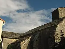 L'église, couverte de lauzes, présente au sud un beau portail de style ogival aux piédroits moulurés supportant une archivolte à double voussure surmontée d'un larmier.
