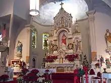 À la fin des années 1960, l'intérieur est réaménagé selon les nouvelles normes post-concilaires. Ainsi par exemple la table de communion est ôtée et un nouvel autel installé face au peuple. Pendant les années 1970, les messes sont animées avec de la musique folk, des guitares, et la jeunesse est assise par terre autour du chœur. C'est une période « haute en couleur » de l'histoire paroissiale. L'église fête son jubilé en 1987; à cette occasion un groupe sculpté est commandé et placé devant l'église faisant face à Main Street. Il représente le père Mazzuchelli, une religieuse de la Charité de la Bienheureuse Vierge Marie, un enfant (symbolisant les enfants de la paroisse), le colonel Davenport, qui donna son nom à la ville, et Antoine Le Claire. Le piédestal sur lequel repose le groupe renferme la cloche de l'église originelle.