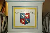 La face avant du caisson est ornée du blason de la famille des comtes Vander Stegen, seigneurs de Bousval[2], tandis que l'arrière porte des armoiries surmontées de la devise de la famille Cupis de Camargo[5] « Mansuetudine et Justitia ».