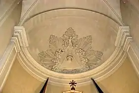 Le chœur est composé d'une travée de chœur et d'une abside semi-circulaire ornée d'une frise de denticules et couverte d'une voûte en cul-de-four, ornée d'un motif en stuc baroque représentant l'œil de la Providence, un œil figuré dans un triangle entouré de nuages, d'angelots et de rayons de lumière.