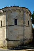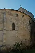 Les trois baies romanes de l'abside, en plein cintre, portent des décorations géométriques. Les deux baies du chœur, plus tardives, sont sans décoration.