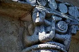 Toute la sculpture figurée romane est concentrée sur la corniche de l'abside : trois chapiteaux et quinze modillons.