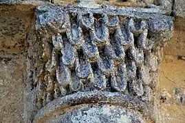 Le troisième chapiteau, qui n'est pas figuré, porte un décoration de feuillages simples.