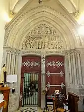 - Le tabernacle de l'autel de la Vierge, encadré de panneaux peints, datant de 1619[41] ;