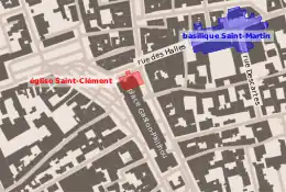 L'église Saint-Clément se situe à Tours (Indre-et-Loire, France), dans la partie nord de la place Gaston-Paillhou. Son mur nord était en alignement des façades bordant le côté méridional de la rue des Halles[1].
