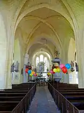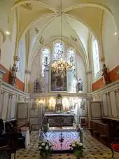 Parmi le mobilier de l'église, six éléments sont classés monument historique au titre objet[15]. Quelques autres éléments méritent également l'attention, dont notamment les représentations des deux saints patrons, pour leur dimension symbolique.