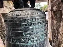 Le clocher est doté d'une cloche massive fondue en 1872, baptisée "Félicie". Sa marraine a été Marie Thérèse de la Pannonie, son parrain Paul Bergougnoux, de Cavagnac, dont les noms figurent sur la robe de la cloche. Outre cette dédicace, y figure la mention : "Je loue Dieu, j'invoque la Vierge Marie", le nom du fondeur aveyronnais et la date, 1872.