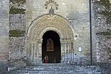 La façade occidentale, percée d'un portail en plein cintre, est flanquée de deux contreforts massifs. Le bas-côté sud ajouté au XVIe siècle, plus long que la nef, déborde sur cette façade. Le bas-côté nord, divisé en trois travées par des contreforts, est lui aussi percé d'un portail en plein plein cintre donnant sur le parvis[2]. Le clocher, bien que refait au XIXe siècle, conserve côté nord sa base d'origine. Les baies des absidioles du chevet sont reprises au XVIe siècle, celle de l'abside principale au XVIIe siècle. Elles ont toutes reçu un décor gothique flamboyant[3].