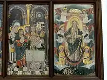 La série de quatre panneaux peints représentant des scènes de la vie de la Vierge provenant d'un polyptyque et réunies dans un même cadre mesure 87 cm de hauteur et 192 cm de largeur, et date du XVIe siècle. De gauche à droite, les sujets sont la Nativité de la Vierge ; l'Annonciation ; la Présentation de Marie au Temple ; et l'Assomption ou le Couronnement de la Vierge. L'ordre n'est pas bon ; l'Annonciation vient évidemment après la Présentation. Il avait certainement davantage de panneaux, puisque même dans le bon ordre, l'ensemble n'est pas cohérent (manquent la Visitation, la Nativité du Christ, la Fuite en Égypte, la Dormition…). Le style est naïf, mais dénote néanmoins une influence de l'art de la Renaissance. Concernant l'iconographie, le dernier panneau présente une particularité. Au milieu d'une mandorle, la Sainte-Vierge est doucement hissée au ciel par l'aide de quatre anges, tandis que deux autres s'apprêtent à lui poser une couronne sur la tête. À l'accoutumée, ce sont Dieu le Père et Jésus-Christ qui couronnent la Sainte-Vierge une fois arrivée au ciel, le tout sous l'assistance du Saint-Esprit. Lors de son classement en , l'ensemble a été classé sous le nom de retable de la Trinité, mais il ne comporte en réalité aucune représentation de la Trinité[20].