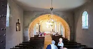 - dans le cimetière attenant, une table des morts réutilise une pierre à cupules préhistorique[5].